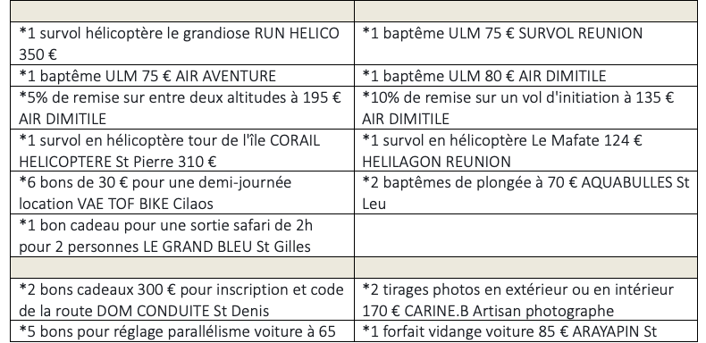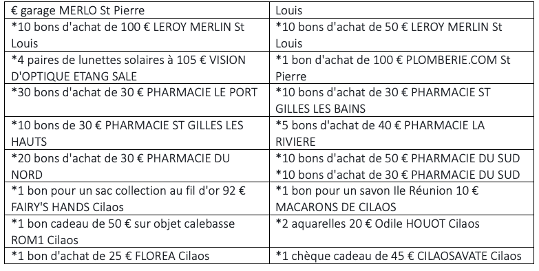 Le tirage au sort aura lieu le dimanche sur Odysséa Réunion, la liste des lots à gagner est sur le stand de la boutique.
