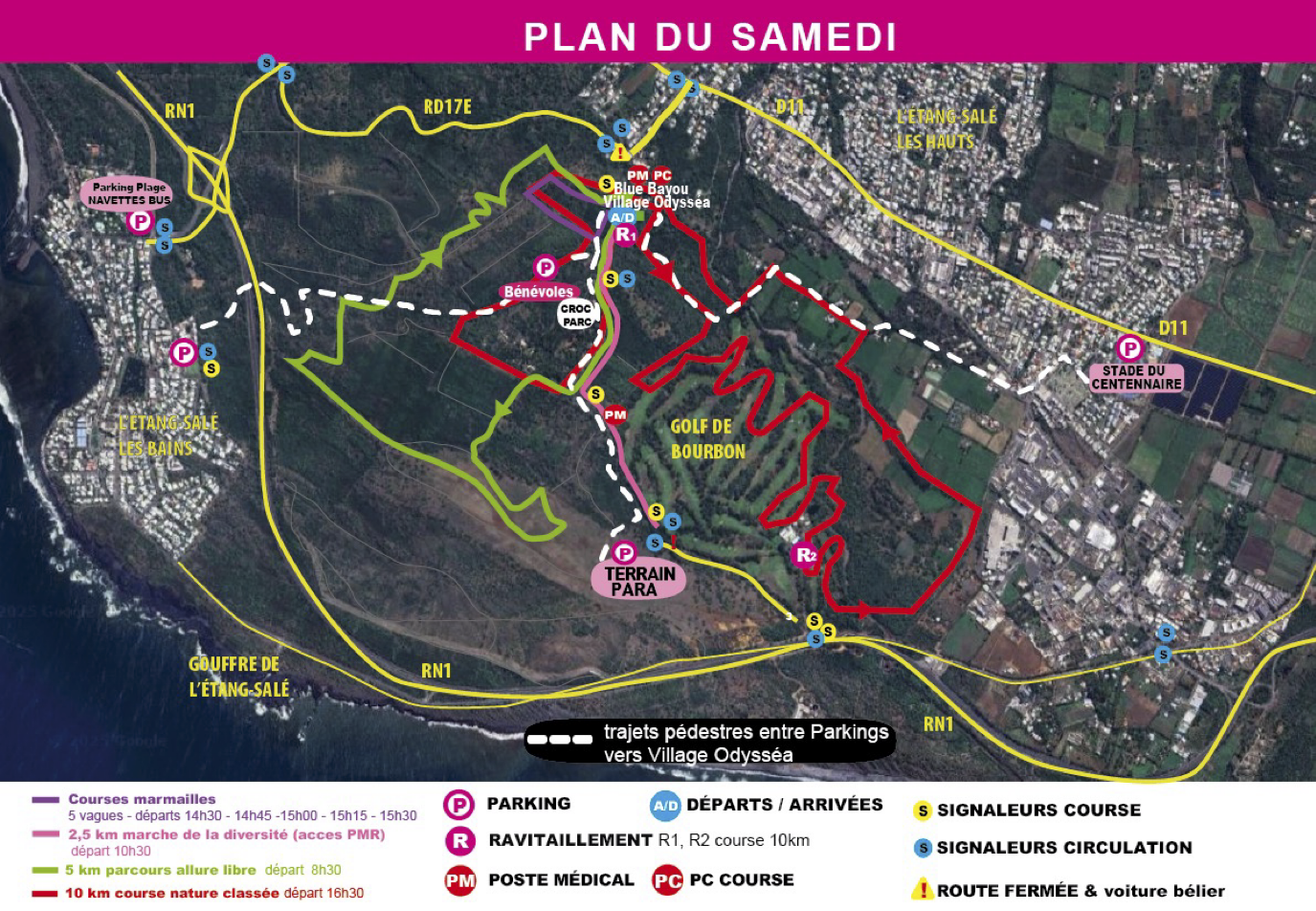 Pas de possibilité de reconnaissance du 10 km sur la partie passante dans le Golf de Bourbon.